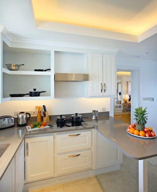 One‑bedroom (~150 m²), two‑bedroom (200–305 m²), and four‑bedroom penthouses featuring open-plan lounges, modern kitchens, and expansive terraces. Ideal for families or long stays.