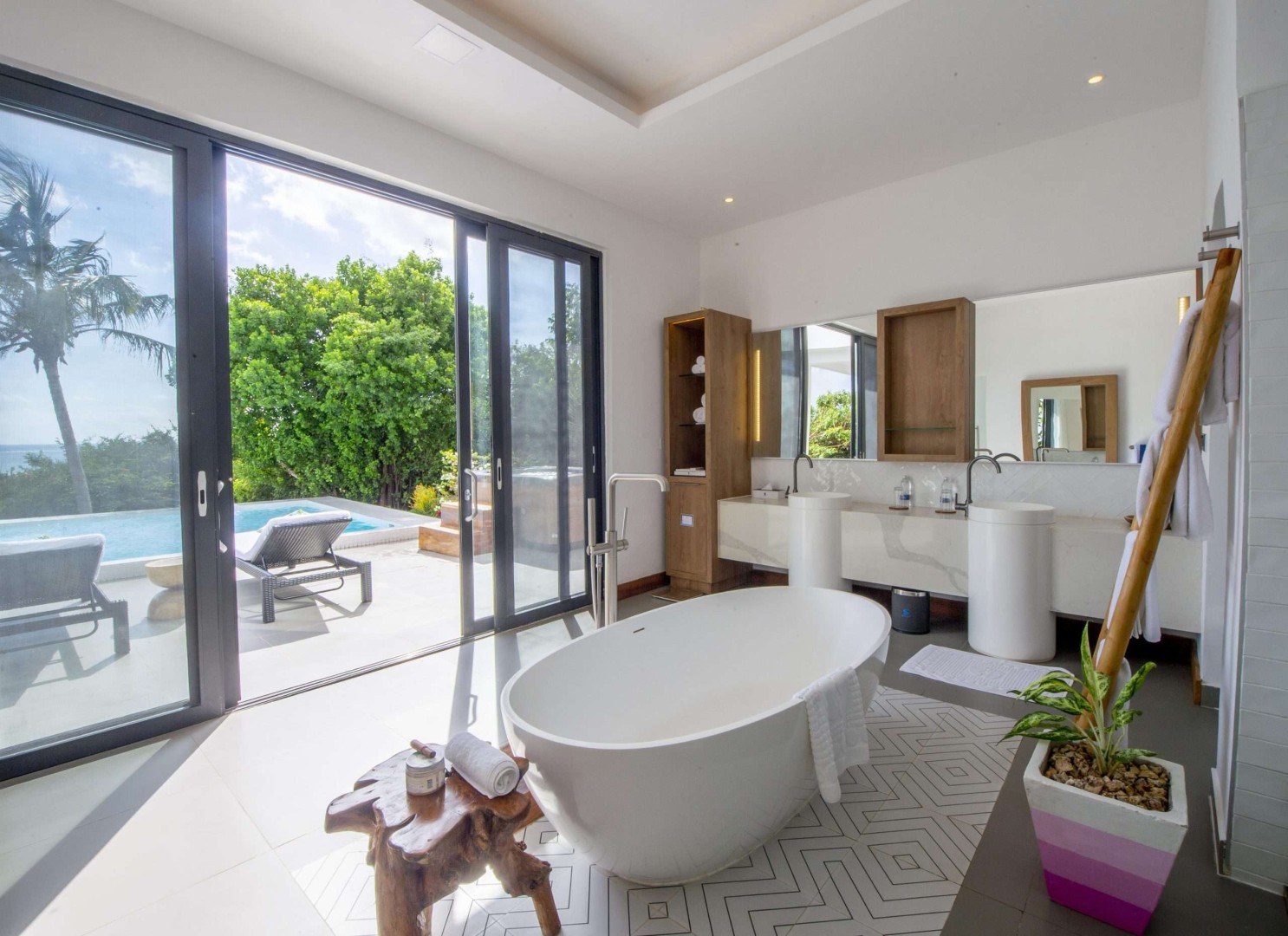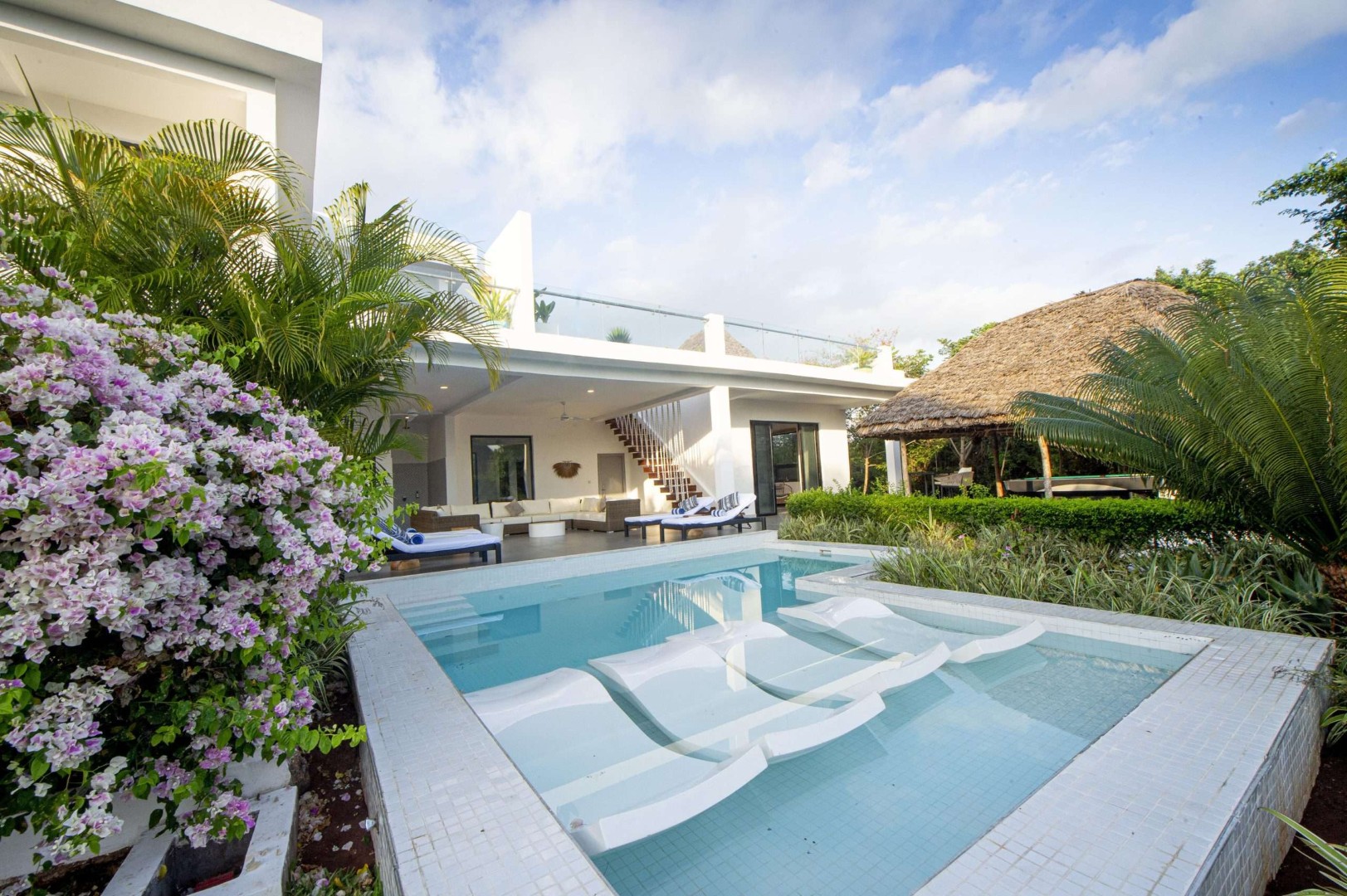 Features include private pools, jacuzzis, outdoor decks, plunge pools, gazebos, and fire-pit lounges.